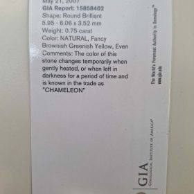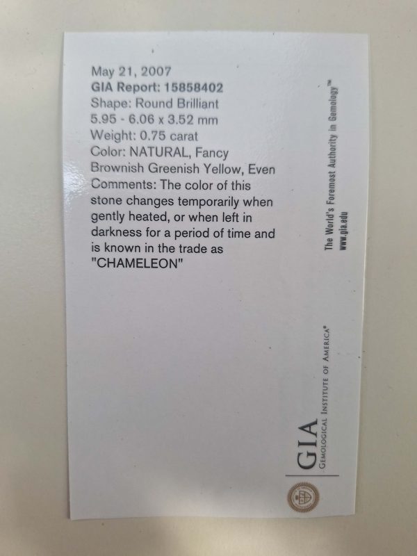 Zusätzliche Anmerkungen: Die Farbe dieses Steins verändert sich vorübergehend bei leichter Erwärmung oder längerer Lagerung im Dunkeln und wird im Fachhandel als „CHAMÄLEON“ bezeichnet.