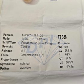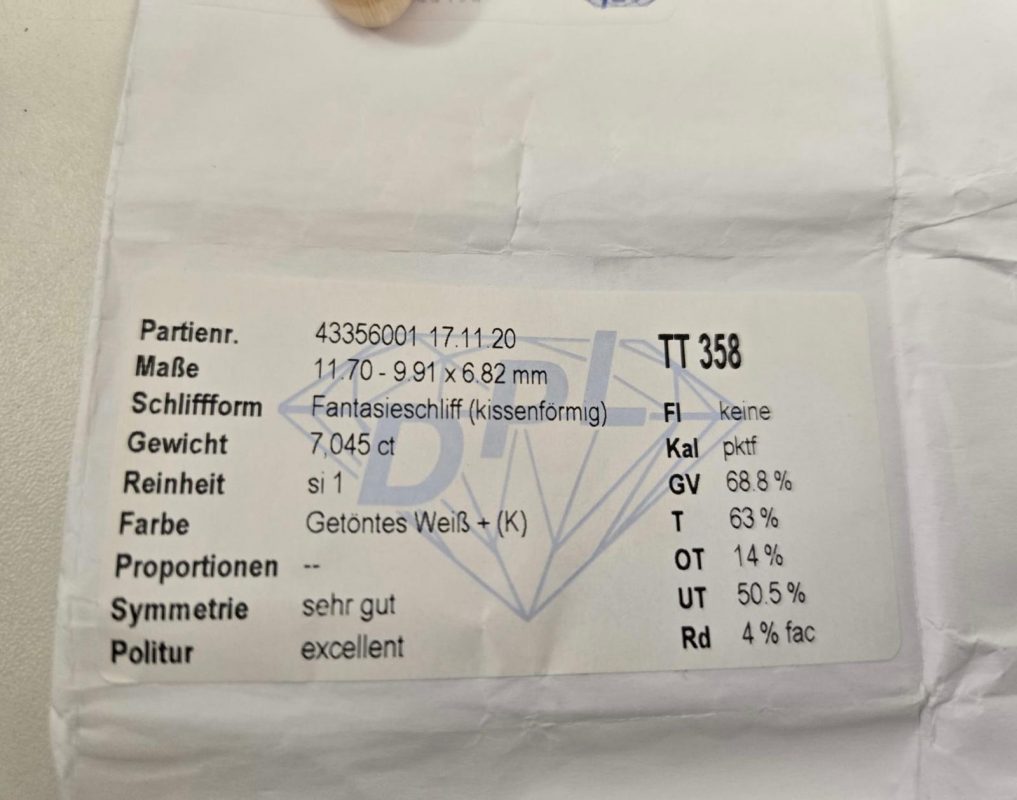 Der Diamant wird zum Verkauf angeboten. Details können gerne aus dem Zertifikat entnommen werden.