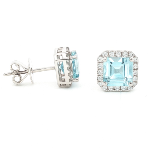 Diamant Ohrstecker Aquamarin 2,17 ct. in Weissgold 18K