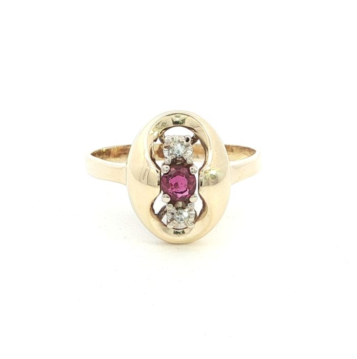Diamant Ring Vintage, in feiner Qualität (585er Gelbgold) mit 2 kleinen Diamanten und einem Spinell.