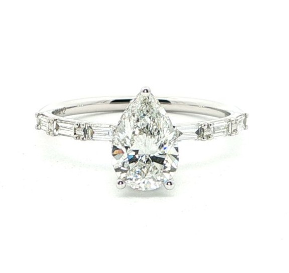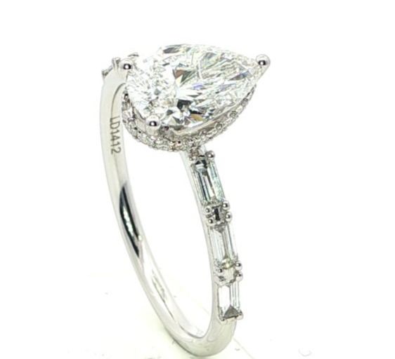 Diamant Ring „Tropfen“ 1,41 ct. Weissgold 14K synthetisch