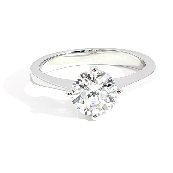Klassisch-moderne Diamantring Fassung mit 4 Krappen. Allerdings sind die Krappen etwas anders – in Kreuzform – angeordnet. Für den Verlobungsring, der etwas besonderes sein soll. Ein Blickfang ist dieses moderne Design in jedem Fall.
