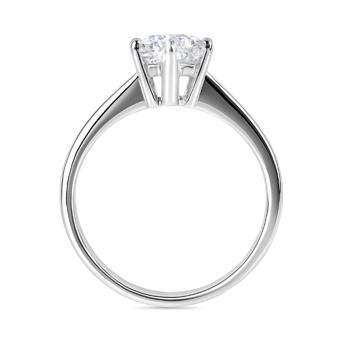 Zeitlose 6 Krappen Fassung mit Verlauf der Ringschiene. Der optische Effekt eines runden Diamanten wird betont. Das Ringmodell wiegt zwischen 3 und 4 Gramm. Im Vergleich zum Ringmodell Oberursel oder Frankfurt ist der Korb ein markanter Unterschied im Design.